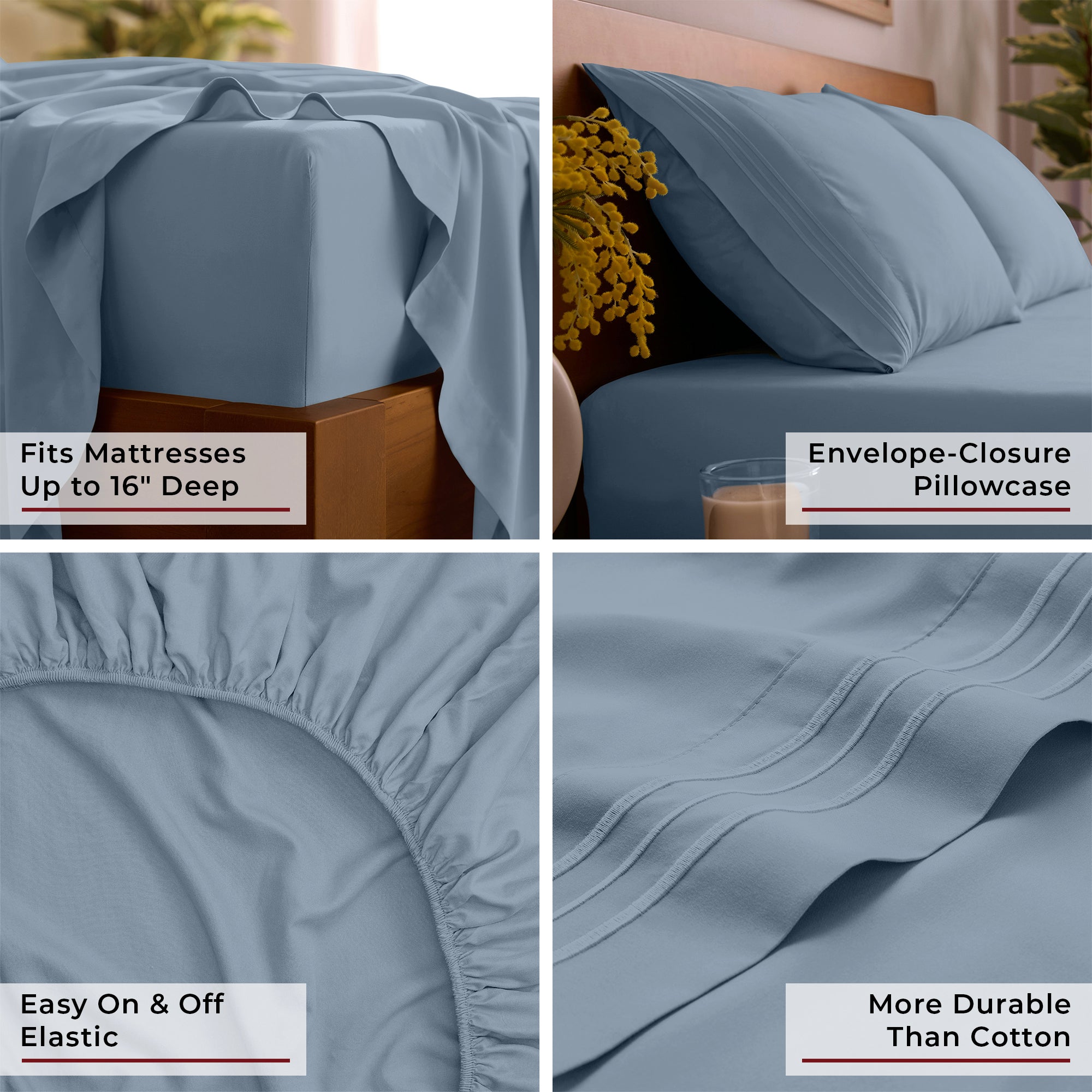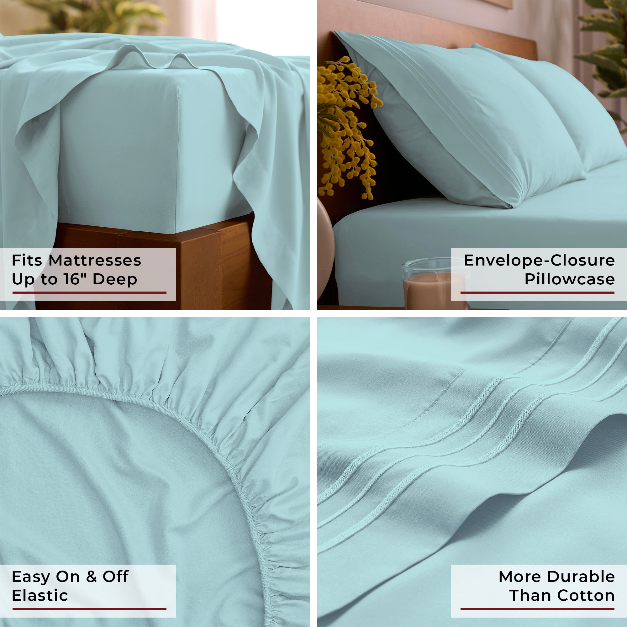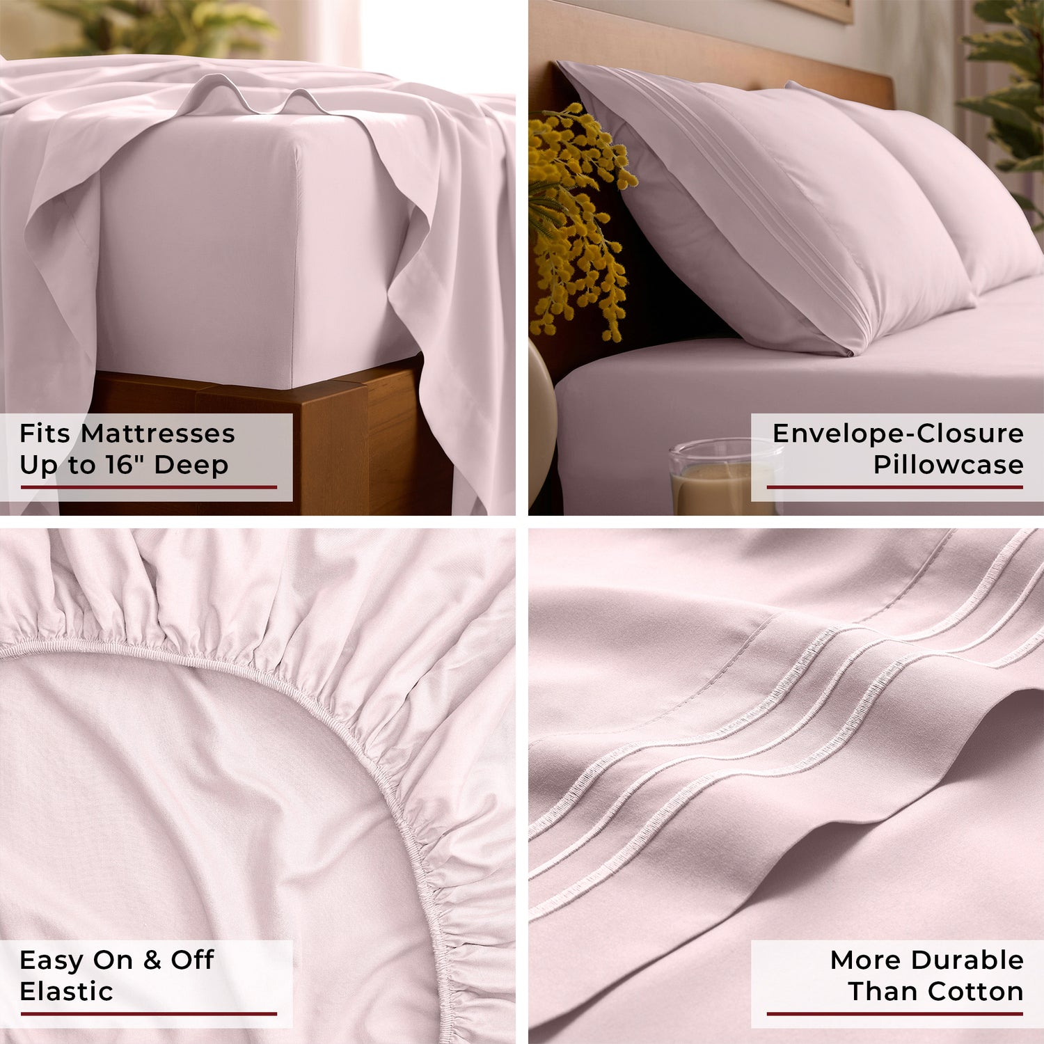 • Deep Pocket Design fits mattresses up to 16" deep