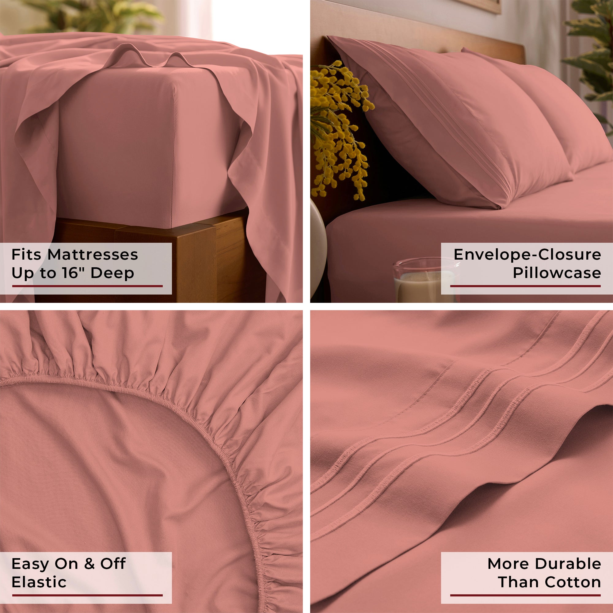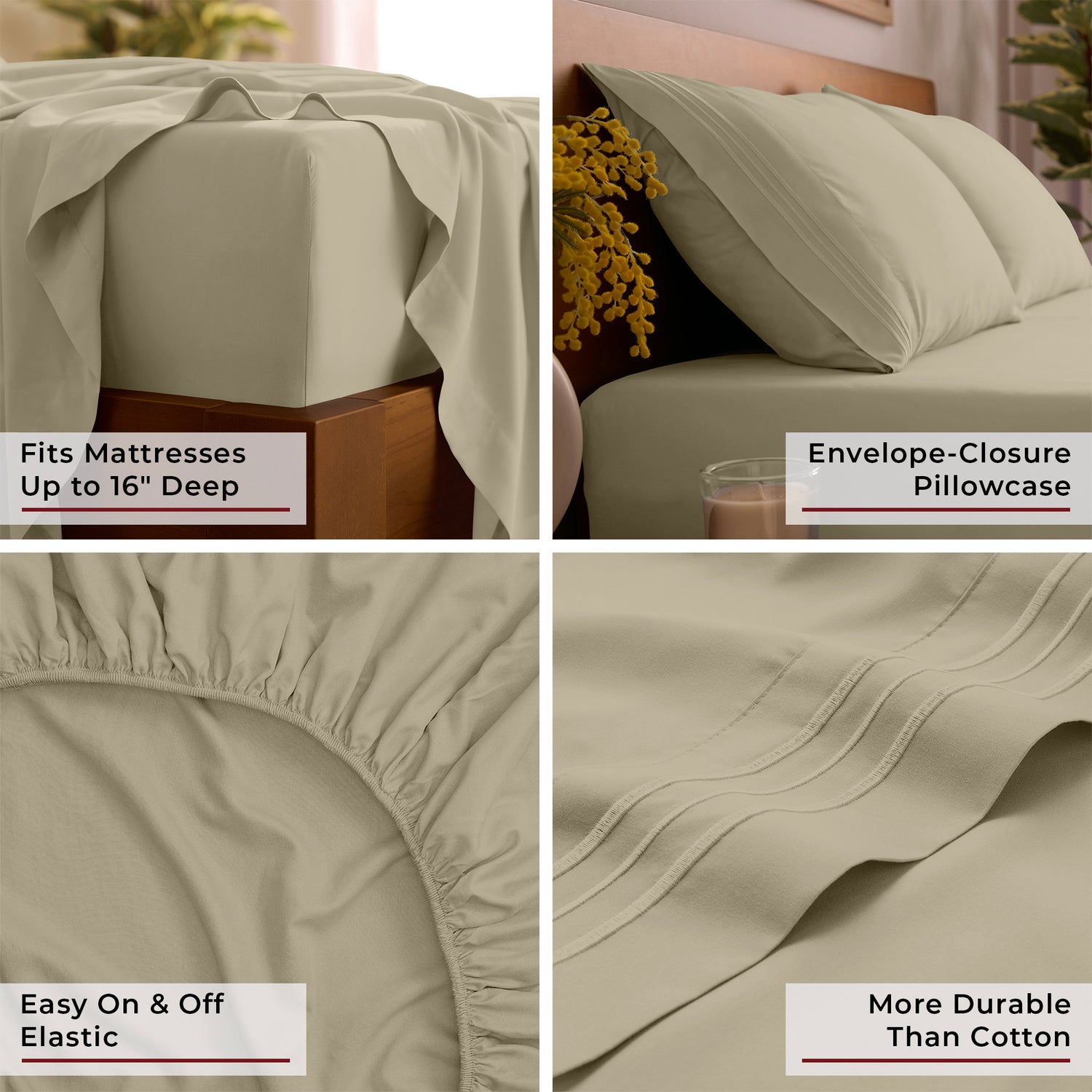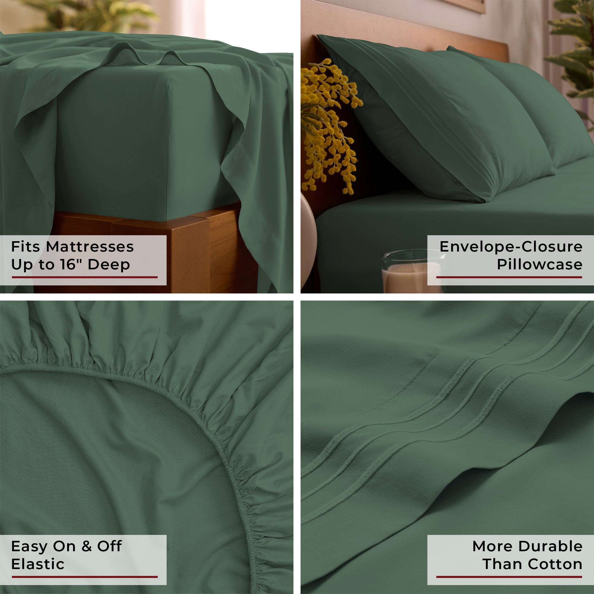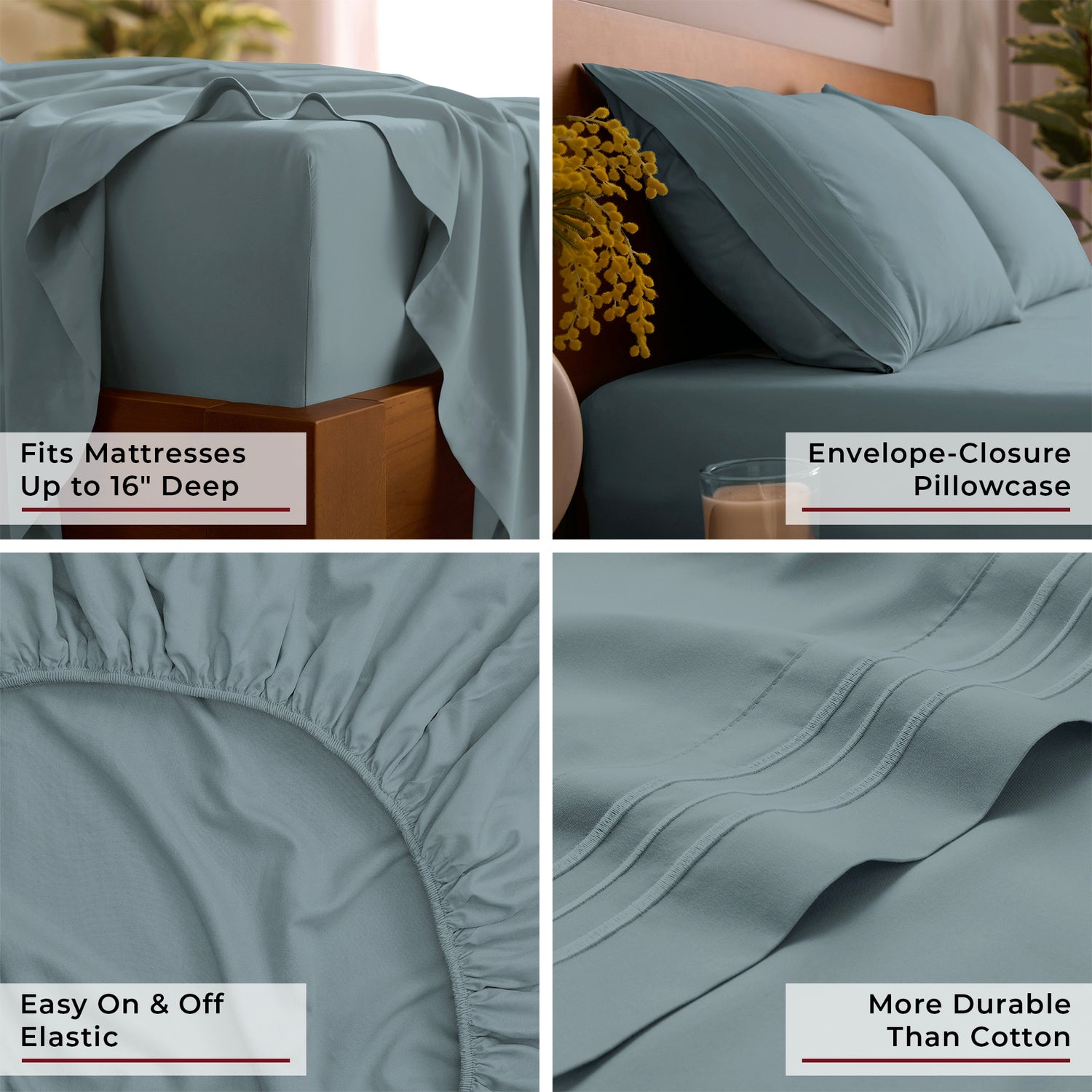 • Deep Pocket Design fits mattresses up to 16" deep