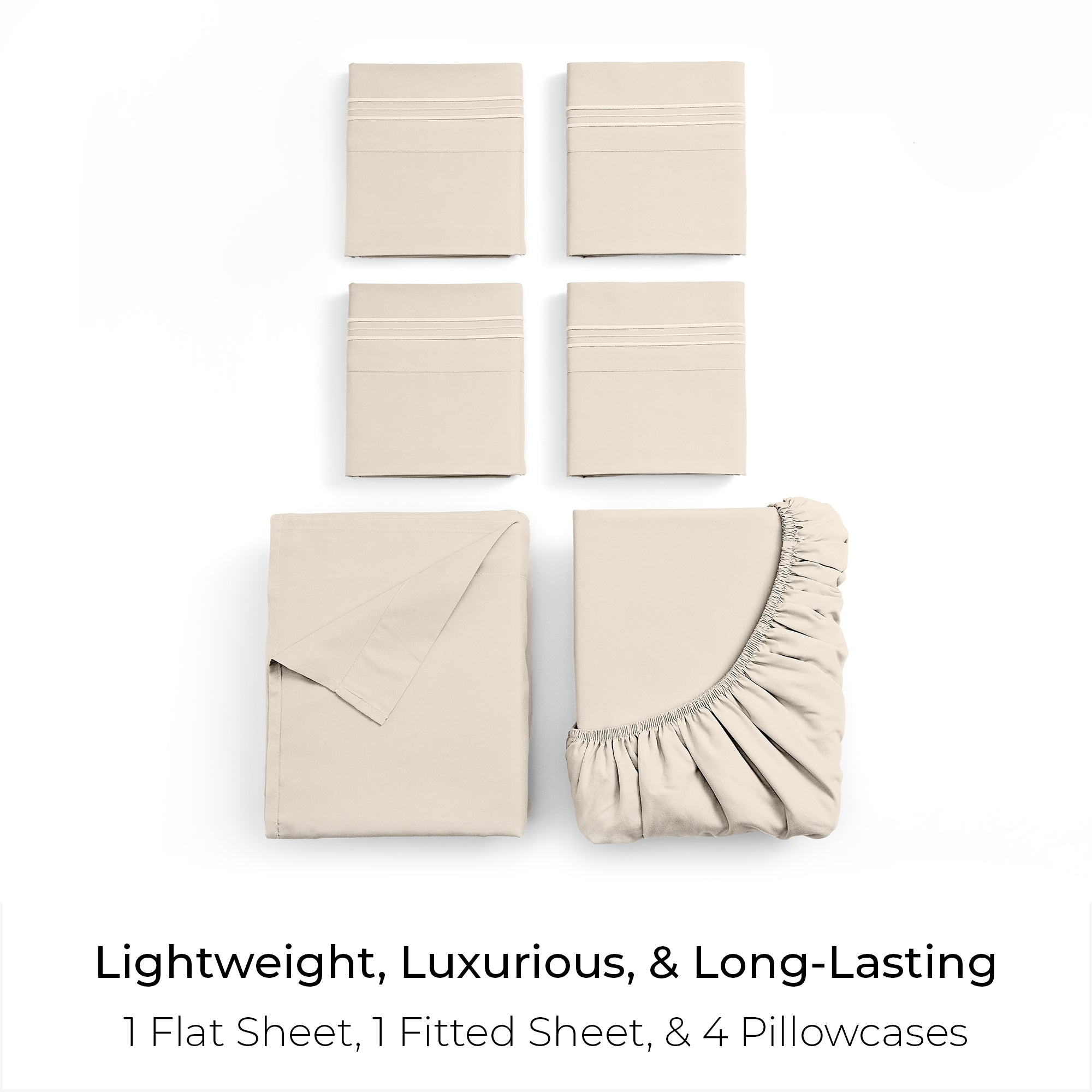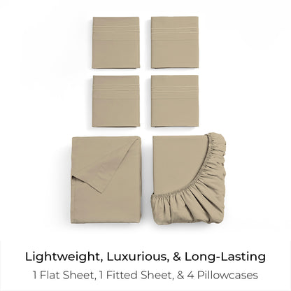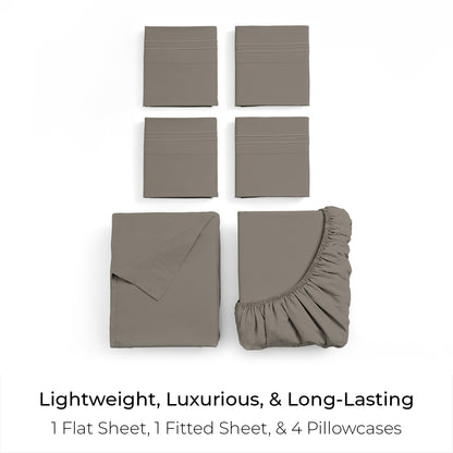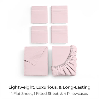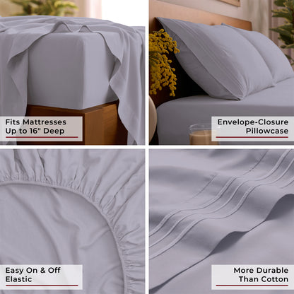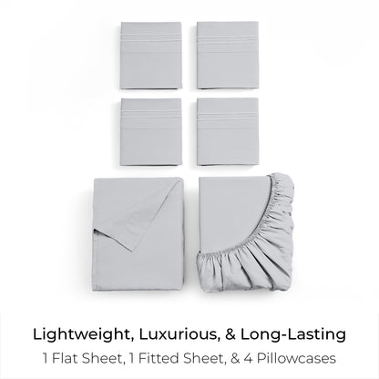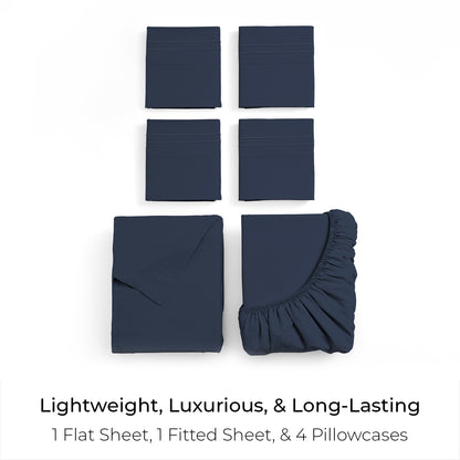 Includes 1 Fitted Sheet, 1 Flat Sheet, and 4 Pillowcases (Twin comes with 2 pillowcases)