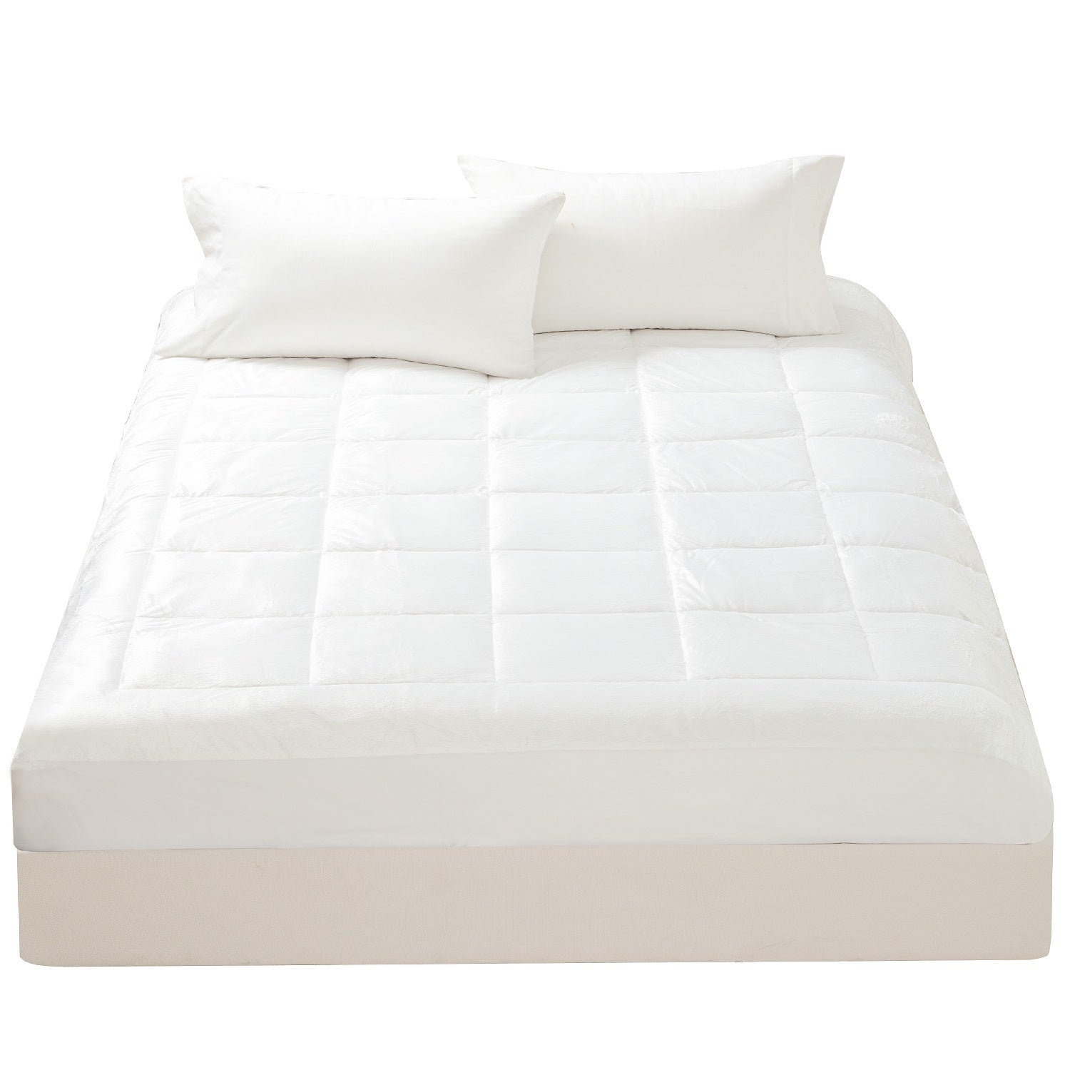 Want to upgrade your mattress with extra support? Our microplush mattress pad is constructed with quilted squares that act as tiny pillows, providing added comfort throughout the night. 100% hypoallergenic, the layered topper protects against dirt, dust, and mites. Fits mattresses up to 16” deep.